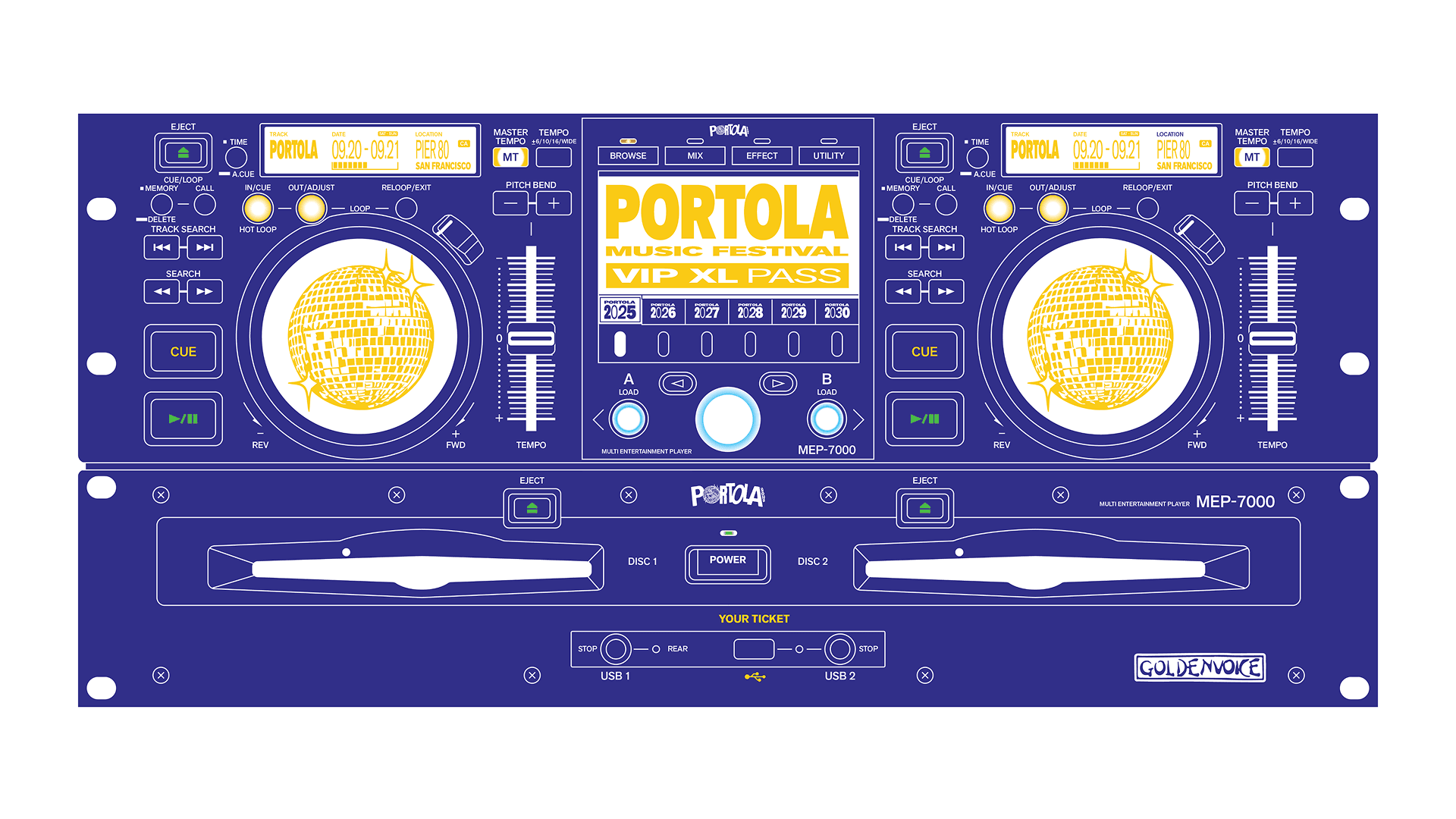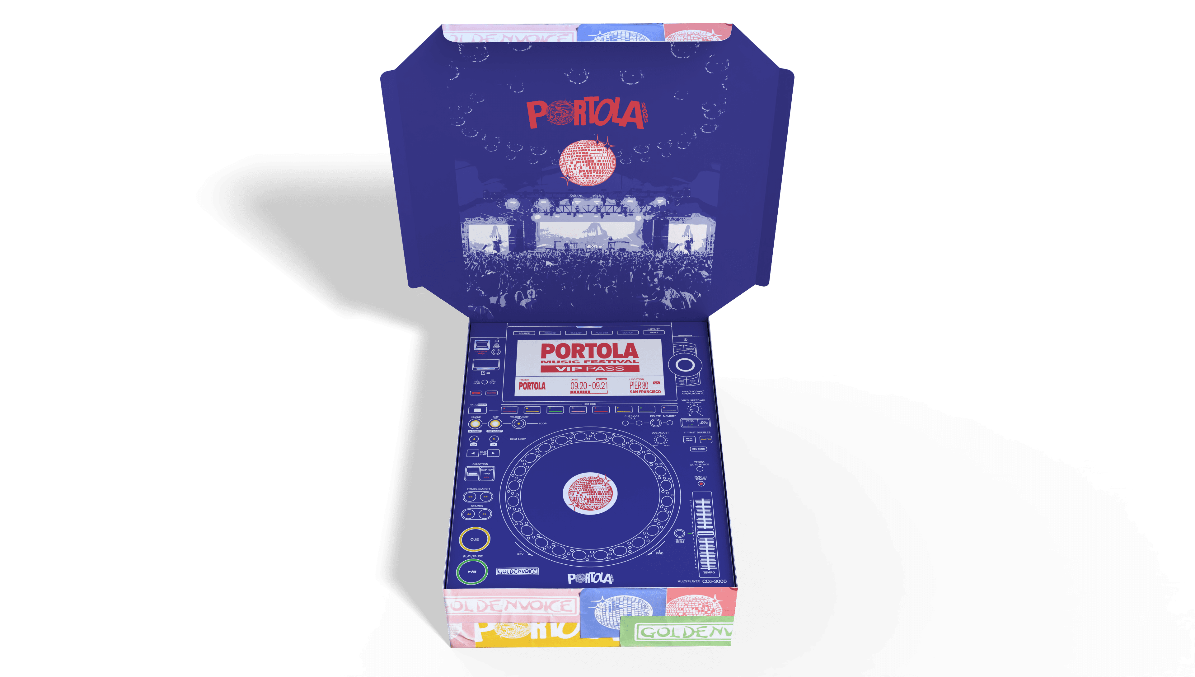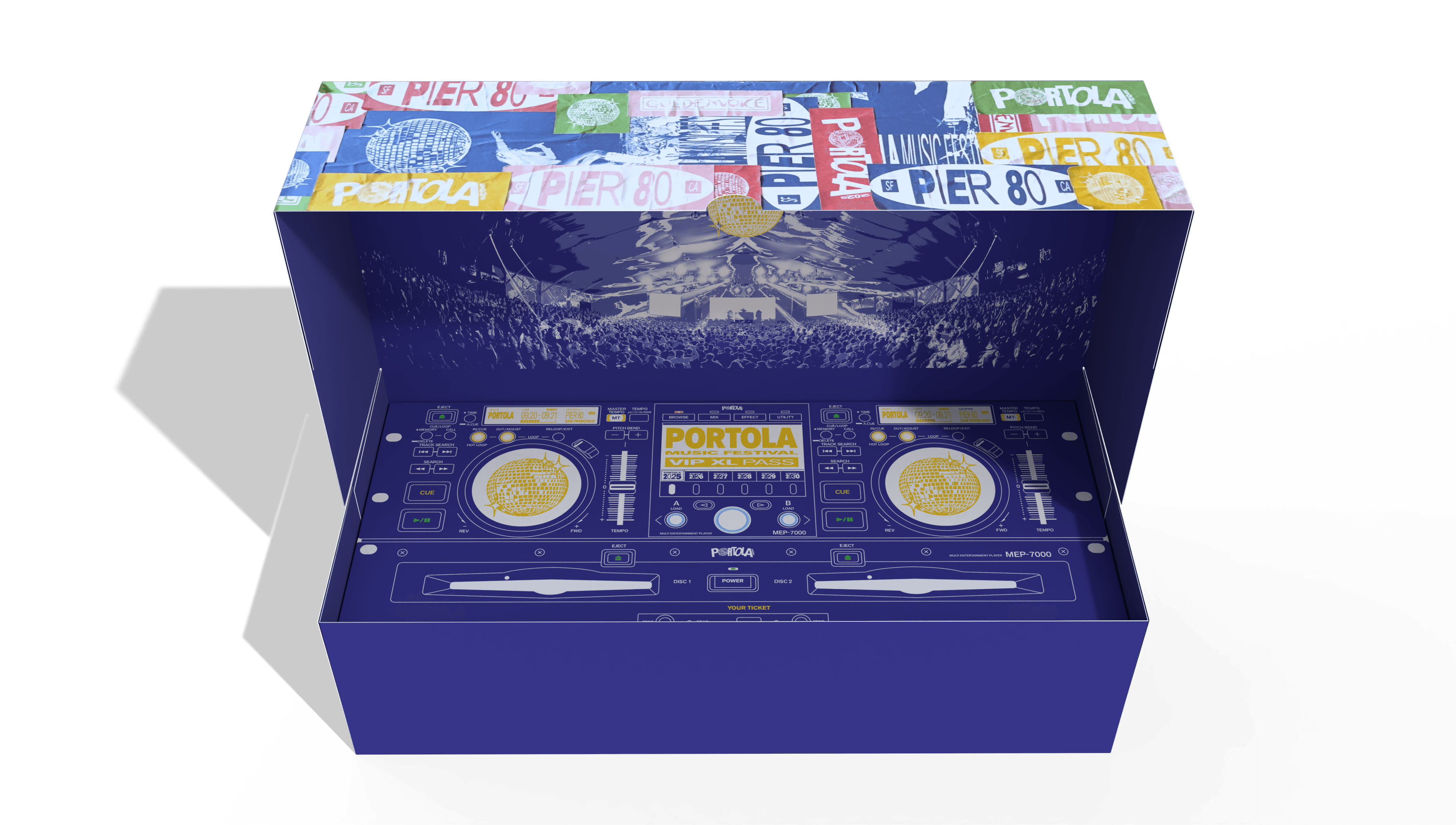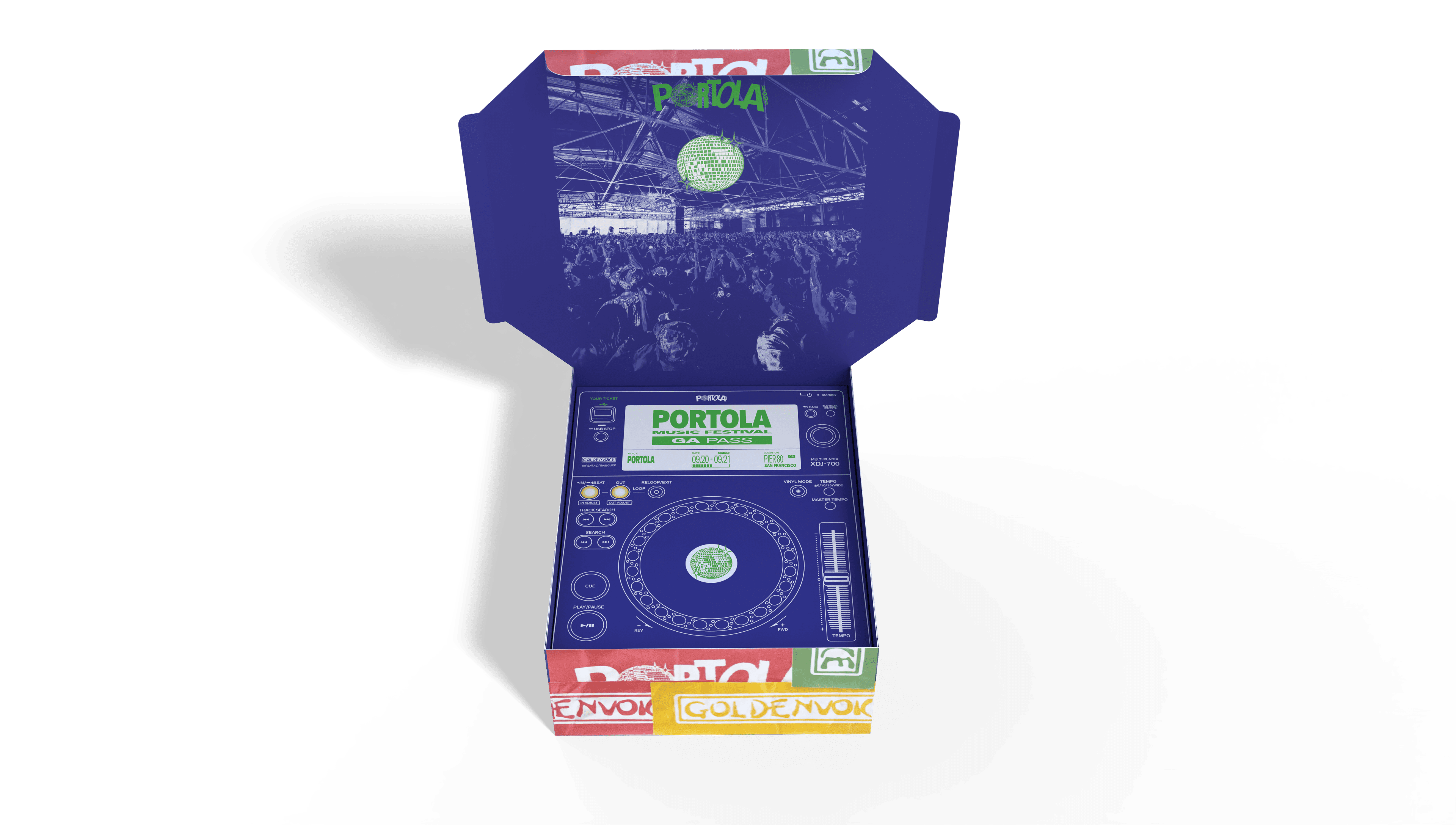 This ticket packaging concept for Portola Music Festival transforms festival admission into a physical keepsake inspired by 90s European rave culture and San Francisco’s industrial Pier 80 setting. The textured stickers on the packaging imitates the rave posters and flyers being found pasted around on the streets. The wristbands themselves resemble USB's to feed into the whole DJ theme.