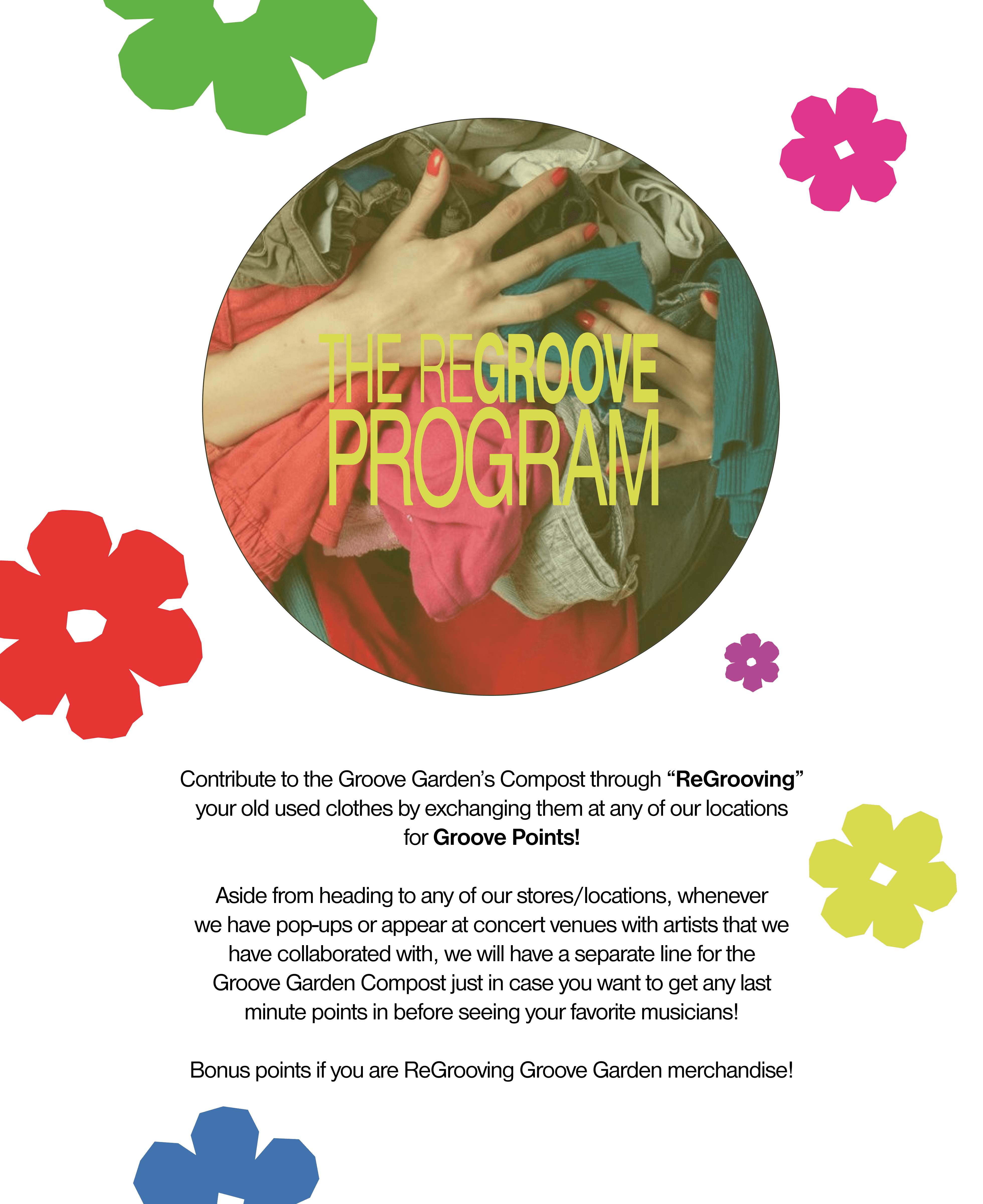 The Groove Garden is a brand focused on changing the world of music artist merchandising by entering the space with a focus on sustainability, a company that creates merch lines and collections for musicians and recording artists that are made from sustainable and circular practices mainly through the use of our “Regroove Program” and our Groove Garden Compost.